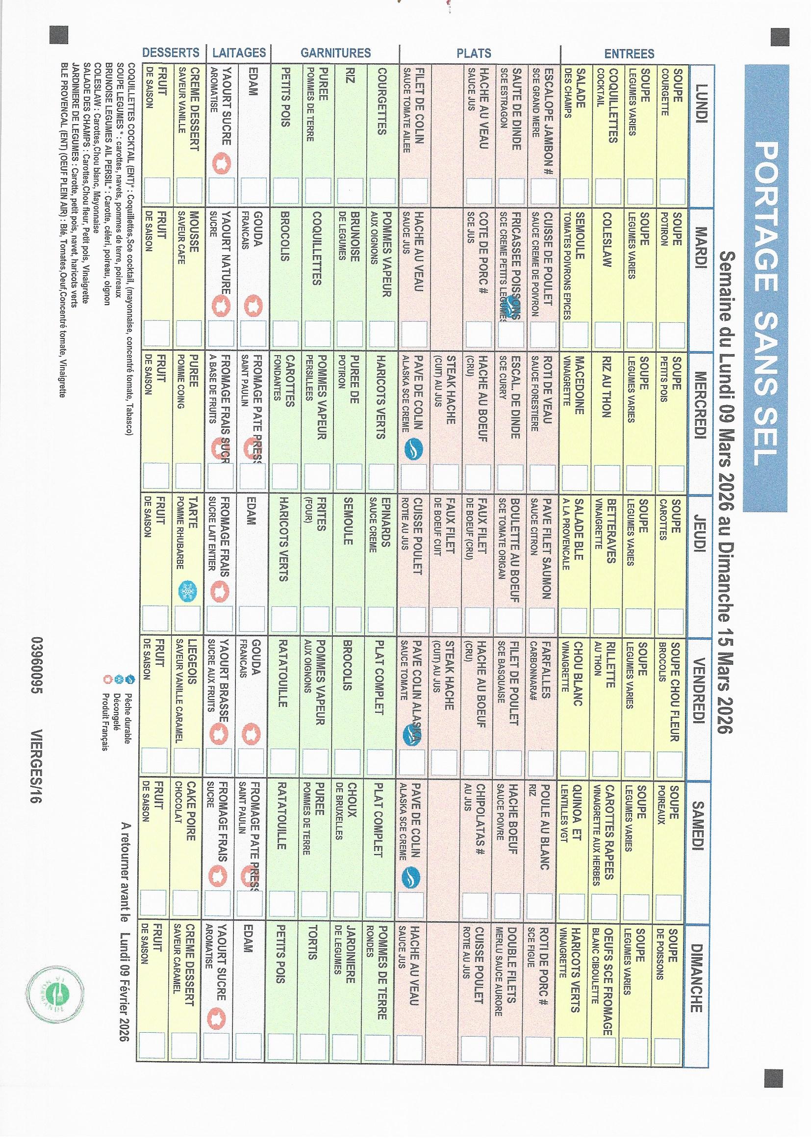 MENUS SANS SEL ET SANS SUCRE