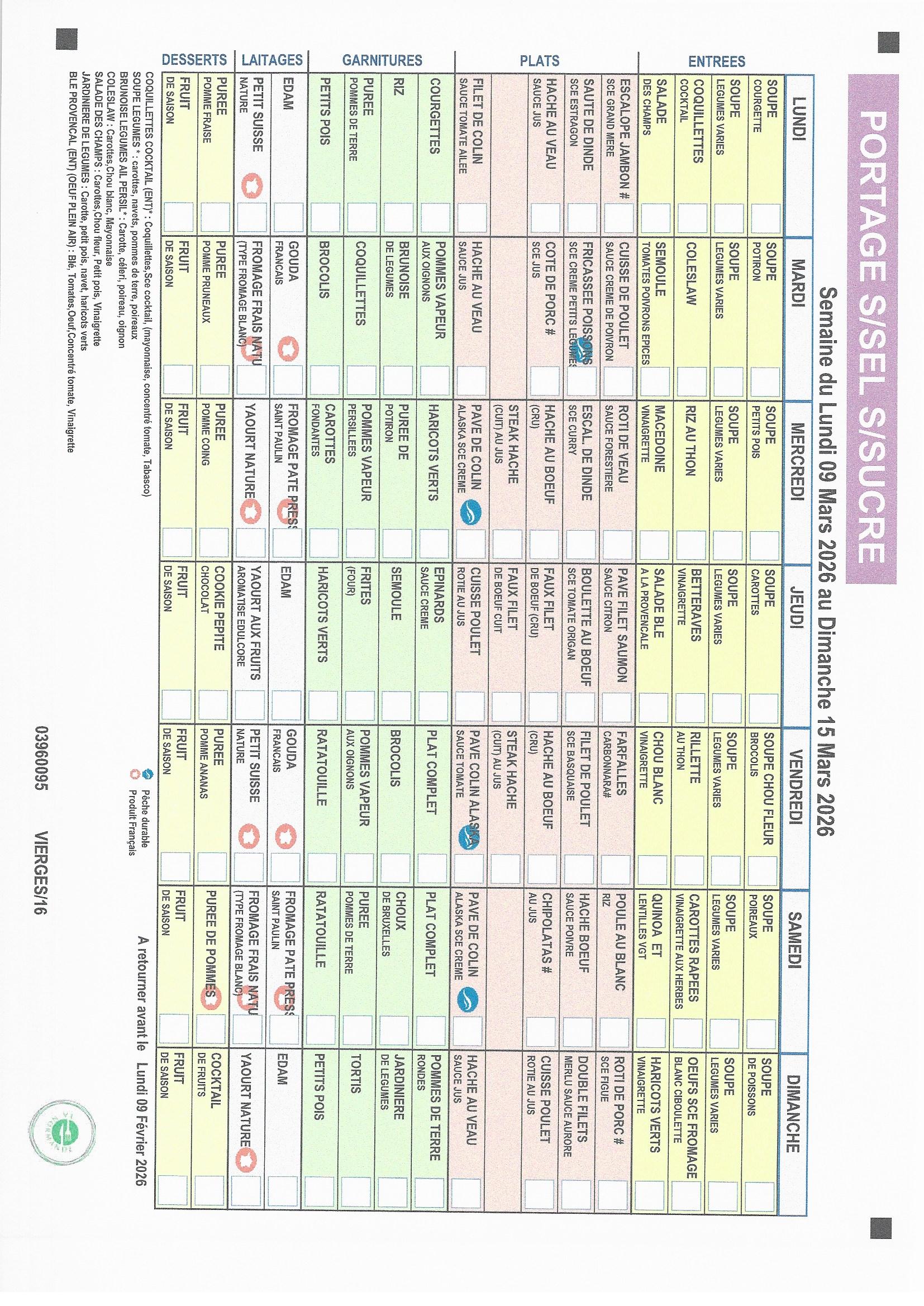 MENUS SANS SEL ET SANS SUCRE